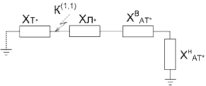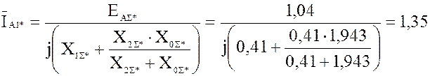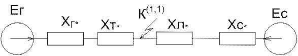 ЕГ* = 1, 13; ЕС* = 1; ХГ* = 2, 777; ХТ* = 1, 943; ХЛ* = 1, 09; ХС* = 0, 5; Определить токи и напряжения при двухфазном к.з. на землю.