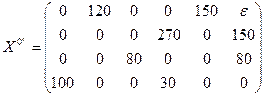 Рассмотрим план построенный методом минимального элемента из задачи предыдущей лекции. Оценим его на оптимальность методом потенциалов. Значение целевой функции для этого плана: План вырожден, т.к. в нем Составим систему уравнений для