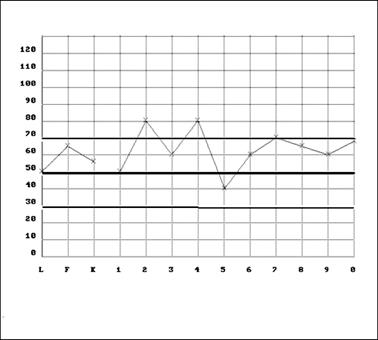 Интерпретация показателей по основным шкалам СМИЛ, в том числе и в сочетании с другими шкалами, подробно приведена выше. В этом разделе приводятся несколько типичных профилей и их интерпретация. Рассматривая эти профили и их толкование, внимательный специалист увидит, что сама по себе высота профиля не столько дифференцирует норму от патологии, сколько отражает остроту эмоционального состояния. Повторяясь, автор руководства еще раз хочет привлечь Ваше внимание к некоторым важным моментам: только в лонгитюдном (динамическом) исследовании можно выявить тенденцию к нормализации, то есть позитивную динамику профиля, которая характерна для сохранной личности и может быть связана с изменением ситуации в лучшую сторону или с изменением отношения обследуемого лица к имеющимся проблемам. Устойчивые признаки отклоняющихся от нормы реакций при повторных исследованиях свидетельствуют об устоявшейся личностной дисгармонии, которая может свидетельствовать как о патологическом развитии личности под влиянием неблагоприятных социально-психологических условий, так и о разрушении личности в результате иных патогенных факторов. Звучащие временами противоречия являются лишь признаком многогранности личностных ресурсов. Это значит, что отдельные избыточно выраженные характеристики в связи с действием защитных механизмов в той или иной степени компенсируются прямо противоположными тенденциями. Длительный опыт применения психодиагностических методик на разных контингентах отечественной популяции показал, что реакции личности не специфичны и зависят в большей степени от базисных свойств, преобладающих индивидуально-личностных черт, то есть - ведущих тенденций, чем от патогенного фактора. Это подтверждают и данные многочисленных осбледований разных репрезентативных групп тестом СМИЛ. Кроме того, всегда следует помнить, что особенности профиля во многом зависят от внутренней установки испытуемого на процедуру тестирования. Так, заниженные, «утопленные» профили в большинстве случаев означают тенденцию к декларации собственной «сверхнормативности». Особенно это проявляется в тех случаях, когда речь идет о кадровом отборе или иной экспертной ситуации. Повышенные профили у лиц психической нормы чаще всего связаны с желанием подчеркнуть имеющиеся проблемы, вызвать сочувствие. Такая реакция свидетельствует у одних - о стремлении найти поддержку и сочувствие (гипостенический тип реагирования), а у других (стеничный или гиперстенический тип) – об уверенном самоутверждении. С другой стороны, у лиц с явными отклонениями от нормы могут встречаться как избыточно высокие профили при достоверности по шкалам LFK, так и умеренно повышенные профили при недостоверных показателях какой-либо из шкал достоверности (особенно это касается шкалы F). Однако сам паттерн переживаний в большинстве случаев (кроме явно симулятивных тенденций) соответствует реальной действительности. В то же время оценка клинических критериев нелепости или неадекватности остаются прерогативой психиатрической компетенции. В известной степени здесь могут помочь данные патопсихологического исследования с применением экспериментально-психологических методик, выявляющих расстройства мышления. Во главе угла интерпретационного подхода автор руководства 