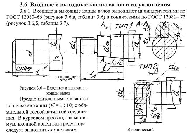 Таблица 3.7 – Размеры конических концов валов по ГОСТ 12081–72, мм, [1, c.432]