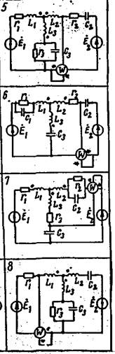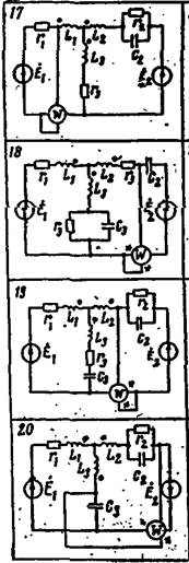 Задание 1. Содержание работы Считая, что индуктивная связь между катушками отсутствует. 1.1. Определить токи во всех ветвях схемы (рис. 1 - 32). 1.2. Построить векторную диаграмму токов и топографическую диаграмму напряжений (см. указания, п.2.1, 2.2.). 1.3. Составить баланс активных и реактивных мощностей. 1.4. Построить на одном графике кривые мгновенных значений e1 и i1. 1.5. Определить показания ваттметра.