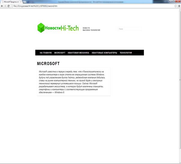 Пользователи легко смогут ориентироваться по сайту благодаря его простоте и удобству. Так же на сайту встроена функция поиска, она ориентируется по словам или буквам, которые пользователь в неё введёт и практически мгновенно найдёт нужную пользователю информацию на сайте. рис.2 < html prefix=" og: https://ogp.me/ns#" lang=" ru-RU" > <! --<! [endif]--> < head> < meta http-equiv=" content-type" content=" text/html; charset=UTF-8" > < meta charset=" UTF-8" > < title> Microsoft Продукты и обзоры компании Microsoft: office, windows, программы и приложения< /title> < link href=" https://plus.google.com/106929986032211752530" rel=" author" > < link rel=" icon" href="../SITEEEE2/index.htmlwp-content/themes/101media/favicon.ico" type=" image/x-icon" > < link rel=" shortcut icon" href="../SITEEEE2/index.htmlwp-content/themes/101media/favicon.ico" type=" image/x-icon" > < link rel=" profile" href=" https://gmpg.org/xfn/11" > < link rel=" stylesheet" type=" text/css" media=" all" href=" files/style.css" > < link rel=" pingback" href="../SITEEEE2/index.htmlxmlrpc.php" > Внешний вид всех страниц сайта должен быть выдержан в едином стиле. На них должно быть указано название ресурса и обязательная ссылка на главную страницу. В остальном каждая страница должна быть уникальна, т.е. иметь свое содержание.