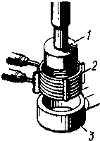 После нагрева в индукторе деталь охлаждают с помощью специального охлаждающего устройства. Через имеющиеся в нем отверстия на поверхность детали разбрызгивается охлаждающая жидкость.