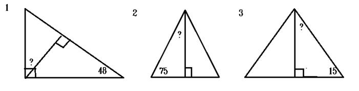 Картка Червоного кольору (завдання достатнього рівня) Чому дорівнює невідомий кут на малюнках?