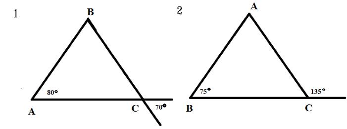 Учні розвязують задачі в парах. Перший варіант №1, другий варіант №2. Кожен учень за правильне виконання одного логічного кроку і пояснення отримує один «+». Завдання. Знайдіть невідомі кути трикутника АВС.