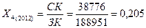 Кпокр.(2012)= 40728/70909=0, 574 Кпокр.(2013)= 46172/99812=0, 463
