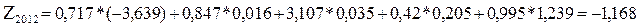 На конец декабря 2012 г. коэффициент текущей ликвидности имеет значение 0, 574, при нормативном значении 2, 0 и более. В течение 2012 г. коэффициент текущей ликвидности снизился на 0, 111. Коэффициент быстрой ликвидности за отчетный период не соответствует норме – 0, 305, при норме 1 и больше. Это говорит, что нет у организации ликвидных активов, которыми можно погасить наиболее срочные обязательства за счет дебиторской задолженности и других денежных средств. Коэффициент абсолютной ликвидности тоже не вписался в норму и составил 0, 02. За год данный коэффициент снизился на 0, 01, это говорит о том, что у организации нет возможности погасить свои наиболее срочные обязательства за счет наличных денежных средств. Следовательно, можно сделать вывод, что баланс является неликвидным, а предприятие – неплатежеспособным. Нормативное значение коэффициента восстановления и утраты платежеспособности предприятия составляет (1). В данном случае коэффициент восстановления составляет 0, 204, а коэффициент утраты – 0, 218, что свидетельствуют о том, что предприятие не имеет возможности восстановить платежеспособность за 6 месяцев, а также предприятие не сможет восстановить утраченную платежеспособность за 3 месяца. Далее рассчитаем степень вероятности банкротства по пятифакторной модели Альтмана.