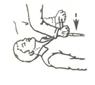 | Ладонь следует расположить по средней линии грудины так, чтобы большой палец был направлен либо на подбородок, либо на живот пострадавшего. Основной толчок должен приходиться на основание ладони.