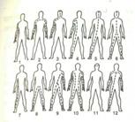 Рис. 38. Чем шире шаг в зоне электрического кратера – тем он опаснее. В этом случае ток сначала пройдет по нижней петле – от ноги к ноге. Этот путь наименее опасен, однако именно он вызывает судороги в ногах. Человек обязательно потеряет равновесие и упадет. Тогда его тело подвергнется воздействию колоссального напряжения, а путь электрического тока обязательно пройдет через сердце. Если ты всегда ходишь в резиновых сапогах и перчатках из толстой резины, тебе необязательно было читать этот жуткий абзац. Толстая резина – надежная гарантия твоей безопасности. И, тем не менее, береженого Бог бережет... КАК НУЖНО ПРИБЛИЖАТЬСЯ К ПОСТРАДАВШЕМУ В ЗОНЕ ЭЛЕКТРИЧЕСКОГО КРАТЕРА? ü Либо прыгая на одной ноге, рискуя в любой момент потерять равновесие. ü Либо гусиным шагом: пятка шагающей ноги обязательно касается носка другой. Самое разумное в подобных случаях – побыстрее сбросить с него провода с помощью любого оказавшегося под рукой не проводящего ток предмета. Для этой цели годятся обычная деревянная палка, книга или свернутая в трубку газета. Если электрические провода крепко зажаты в его сведенной судорогой руке, их придется перерезать ножом или ножницами с изолированными ручками. При воспламенении проводов или возникновении пожара нельзя сбивать пламя с электрических проводов струёй воды. Огонь гасят песком или накрывают плотной тканью. Конечно, предусмотреть все особенности ситуации невозможно. При этом одежда должна быть совершенно сухой. За пострадавшего можно браться только одной рукой. Вторую руку лучше положить в карман или убрать за спину, чтобы случайно не коснуться пострадавшего или проводов. Действуй по обстоятельствам, главное — не растеряться и не забыть о собственной безопасности. Только после изъятия пострадавшего из электрической цепи до него можно дотронуться, оценить его состояние и начать оказывать помощь. ПМП И ПРЕДУПРЕЖДЕНИЕ ü В лесу, не укрываться на полянах под одиноко стоящим деревом; не укрываться под высоким деревом, выделяющимся cpеди остальных (иметь в виду возможность появления электрического кратера, возникновения шагового напряжения); не вставать не садиться на пни. ü В степи, на открытой местности: не стоять; найти более низкое место с сухим грунтом, лечь на землю. ЧТО НЕОБХОДИМО СДЕЛАТЬ ДЛЯ СОХРАНЕНИЯ ЖИЗНИ, ЕСЛИ ПОСТРАДАВШИЙ НЕ ПРИХОДИТ В СОЗНАНИЕ БОЛЕЕ ЧЕТЫРЕХ МИНУТ? ü Повернуть пораженного током на живот. ü Обложить его голову пакетами с холодной водой или льдом. ПМП 1. При ожогах необходимо обработать ожоговую поверхность или наложить сухую стерильную салфетку (см. далее «Ожоги»). 2. При кровотечении следует наложить кровоостанавливающие жгуты или давящие повязки. 3. При переломах костей конечностей — обязательно использовать шины из любых подручных средств. 4. Прогноз для пораженных электрическим током высокого напряжения или молнией, как правило, трудно предсказуем. 5. У пострадавших часто наблюдаются повторная остановка сердца и стойкое угнетение дыхания, почечная и печеночная недостаточность, нарушение психики и интеллекта. НЕДОПУСТИМО! Закапывать в землю пораженного молнией! ЭЛЕКТРИЧЕСКИЕ ОЖОГИ, хотя и не бывают обширными по площади, но в большинстве случаев глубже, чем термические. Они сопровождаются более тяжелым повреждением тканей и часто осложняются некрозом и развитием тро