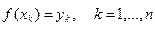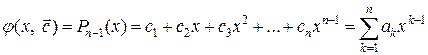 Интерполяционным многочленом называют алгебраический многочлен степени n-1, совпадающий с аппроксимируемой функцией в выбранных n точках. Общий вид алгебраического многочлена