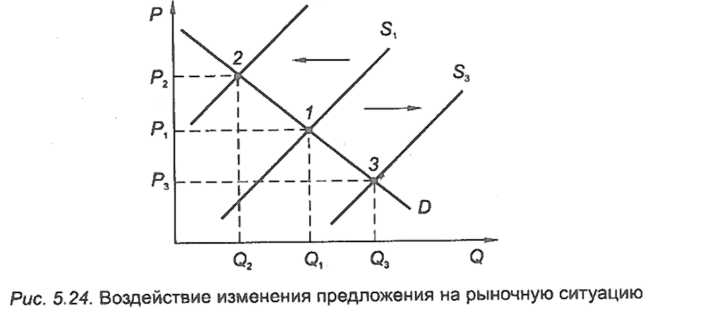Среди основных факторов, способных изменить предложение, можно выделить следующие (эти факторы называются неценовыми детерминантами предложения): 1. Цены ресурсов, используемых в производстве товара. Чем больше должен платить предприниматель за труд, землю, сырье, энергоносители и т. п., тем ниже его прибыль и тем меньше его желание предлагать на продажу данный товар. Значит, при увеличении цен на применяемые факторы производства предложение товара снижается, а уменьшение цен на ресурсы, наоборот, стимулирует повышение количества предлагаемого товара при каждой цене, и предложение возрастает. 2. Уровень технологии. Любое технологическое усовершенствование, как правило, приводит к сокращению затрат на ресурсы (снижению издержек производства) и поэтому сопровождается расширением предложения товара. 3. Цели фирмы. Основная цель любой фирмы — максимизация прибыли. Однако зачастую фирмы могут преследовать иные цели, что сказывается на предложении. Например, стремление фирмы производить товар без загрязнения окружающей среды может привести к снижению количества предлагаемого товара при каждой возможной цене. 4. Налоги и субсидии. Налоги влияют на расходы предпринимателей. Рост налогов означает для фирмы рост затрат на производство продукции, а это, как правило, вызывает сокращение предложения; снижение налогового бремени имеет обычно обратный эффект. Субсидии ведут к снижению издержек производства, поэтому увеличение субсидий бизнесу, безусловно, стимулирует расширение производства, и кривая предложения смещается вправо. 5. Цены на иные товары также могут влиять на предложение данного блага. Например, резкое повышение цен на нефть может привести к увеличению предложения угля. 6. Ожидания производителей. Так, ожидания производителями возможного повышения цен (инфляционные ожидания) оказывают неоднозначное воздействие на предложение товаров. Предложение тесно связанно с инвестициями, а последние чутко и, главное, труднопредсказуемо реагируют на конъюнктуру рынка. Однако в зрелой рыночной экономике ожидаемый рост цен на многие товары вызывает оживление предложения. Инфляция в условиях кризиса обычно вызывает снижение производства и сокращение предложения. 7. Количество производителей (степень монополизации рынка). Чем больше фирм выпускает данный товар, тем выше предложение этого товара на рынке