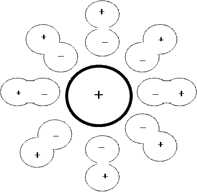 Рисунок 8.2 – Ион растворённого вещества, окружённый молекулами растворителя