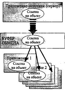 При просмотре или распечатке составного документа связанный объект ничем не отличается от внедренного. Различие проявляется лишь при редактировании объекта. Связанный объект всегда находится в документе-источнике, а в составном документе-приемнике хранится ссылка (указание местонахождения) на файл с этим документом (рис. 12.18). Таким образом, при связывании объекта в документах-приемниках указываются ссылки на объект, а сам объект хранится в единственном экземпляре в документе-источнике. Любые изменения объекта, проводимые в документе-источнике, обязательно отражаются на представлении объекта в составных документах. При открытии составного документа необходимо позаботиться о том, чтобы присутствовали все файлы, в которых хранятся связанные с ним объекты, причем в точности в тех папках, в которых они находились при связывании.