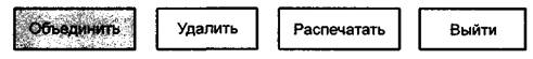 Идея объединения двух и более макросов привела к созданию пользовательских меню. На рис. 14.11 мы видим пользовательское меню, построенное для объединения электронных таблиц. Меню имеет четыре пункта (Объединить, Удалить, Распечатать и Выйти), каждый из которых реализуется выполнением специально разработанного макроса. Выбор и запуск выполнения того или иного макроса в зависимости от особенностей конкретного табличного процессора могут осуществляться следующим образом: специальной клавишной комбинацией с последующим вводом имени макроса; указанием вызывающей клавиши отдельно для каждого макроса; включением вызова макроса как нового пункта в системное меню; добавлением кнопки вызова макроса в панель инструментов; контекстным вызовом менеджера макросов мышью.
