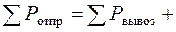 Для расчета показателей ввоза и вывоза из суммы отправления (погрузка) и суммы прибытия (выгрузка) необходимо вычесть значение показателя перевозки в местном сообщении, так как в наличии две грузовые операции (погрузка и выгрузка):