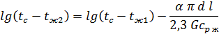 Температуру воды на выходе находим из уравнения теплового баланса: α Δ tлλ dl = Gcp ж(tж2— tж1) учитывая, что
