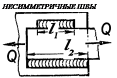τ = Q / (2*0, 707 d l ) ≤ [ τ ' ] шва. При действии момента: τ = M / (0, 707 k d l ) ≤ [ τ ' ] шва.