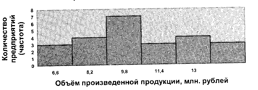 Рис.2.2 – Гистограмма распределения предприятий по объему производства