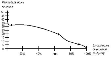 Рис. 2.1 – Залежність вірогідності отримання прибутку від запланованої ефективності виробничої діяльності.
