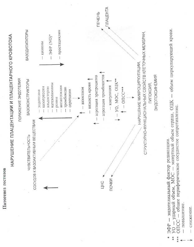 Гестоз беременных – это осложнение беременности, обусловленное несоответствием возможностей адаптационных систем организма матери адекватно обеспечить потребности развивающегося плода. Гестоз проявляется синдромом полиорганной недостаточности, Проблема гестоза беременных – одна из наиболее актуальных в современном акушерстве, так как он относится к наиболее распространенным и тяжелым осложнениям беременности. Гестоз является одной из основных причин материнской смертности и во многом определяет уровень перинатальной заболеваемости и смертности. Среди причин материнской смертности гестоз стоит на втором месте после кровотечений и составляет около 23%. Уровень перинатальной заболеваемости колеблется от 64 до 78%, а перинатальной смертности – от 18 до 30%. Частота гестоза не имеет тенденции к снижению и составляет 8-17, 4%. Довольно высокий уровень гестоза обусловлен, прежде всего, неудовлетворительным состоянием здоровья беременных, а также наличием стрессов, обусловленных современными социально-экономическими условиями, усиливающими дезааптацию в организме женщины в процессе развития беременности. В настоящее время доля беременных с экстрагенитальной патологией в нашей стране составляет 53, 4%, а при использовании современных методов оценки здоровья населения выявлено, что до 75% беременных имеют те или иные нарушения здоровья. Этиопатогенез. Если клиника различных форм гестоза изучена достаточно хорошо, то его сущность, механизм возникновения тех или иных патологических процессов еще полностью не раскрыты. Несмотря на многочисленные исследования, как в нашей стране, Плодное яйцо является основным этиологическим фактором | возникновения гестоза, так как он не встречается вне беременности, и после ее прерывания проявления гестоза прекращаются. В последнее время появляется все больше исследований, Чужеродность плода при гетерозиготной беременности не К числу факторов, имевших непосредственное отношение к возникновению гестоза относятся, прежде всего, иммунологические сдвиги в организме матери и плода и несостоятельность маточно-плацентарного барьера. Плацента обладает собственным механизмом, позволяющим успешно преодолевать барьер тканевой несовместимости между организмами матери и плода. Этот механизм заключается в избирательном угнетении Т-клеточного звена иммунитета матери веществами, вырабатываемыми плацентой. При этом блокируется первоначальное звено реакций трансплантационного иммунитета – процесс распознавания Т-клетками антигенных различий между тканямиматери и плодово-плацентарного комплекса. Нарушение или извращение этого механизма может явиться одним из факторов патологического течения беременности. Аутоантитела, будучи механизмом защиты при нормальной беременности при повышении их физиологического уровня могут действовать против собственных тканей организма, вызывать усиление сосудисто-тканевой проницаемости и является одним из патогенетических механизмов развития гестоза. При гестозе повышается иммунологическая чувствительность материнского организма, что подтверждается резким возрастанием титра как специфических, так и неспецифических антител в сыворотке крови. Основное значение придается антигенам системы Нg-4. В эксперименте с введением антиплацентарной сыв