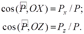 где На рис. 3.16 тело давления заштриховано вертикальными линиями. Горизонтальная составляющая Рх проходит через центр давления проекции w х, а вертикальная составляющая Рz проходит через центр тяжести тела давления. Направление вертикальной составляющей Рz для схемы, изображенной на рис. 3.16, а – вниз, а на рис. 3.16, б – вверх. Направление линии действия силы Р определяется направляющими косинусами: