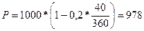 Рис. 2. Схема определения текущей стоимости Учетный процент используется в операциях с векселями. Пример 2. Вексель номиналом 1000 рублей учтен в банке за 40 дней до погашения. Определите сумму, полученную владельцем векселя, если учетный процент составляет 20%. Решение: