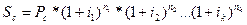 Как видим, величина множителя наращения зависит от двух параметров – i и n.Следует отметить, что при большом сроке наращения даже небольшое изменение ставки заметно влияет на величину множителя. В свою очередь очень большой срок приводит к устрашающим результатам даже при небольшой процентной ставке. Данная формула получена для годовой процентной ставки и срока, измеряемого в годах. Однако ее можно применять и при других периодах начисления. В этих случаях i – ставка за период начисления, n–число таких периодов. Например, если i – ставка за полугодие, то n – число полугодий и т.д. Переменные ставки. Формула сложного процента предполагает постоянную ставку на протяжении всего срока начисления процентов. Неустойчивость кредитно-денежного рынка заставляет модернизировать «классическую» схему, например с помощью применения плавающих ставок. Естественно, что расчет на перспективу по таким ставкам весьма условен. Иное дело расчет постфактум. В этом случае, а также тогда, когда значения переменных ставок фиксируются в контракте, общий множитель наращения определяется как произведение частных множителей