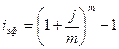 Как видим, эффективная ставка при m > 1 больше номинальной, при m = 1, i = j. Замена в договоре номинальной ставки j при m-разовом начислении процентов на эффективную ставку iэф не изменяет финансовых обязательств участвующих сторон, т.е. обе ставки эквивалентны в финансовом отношении.