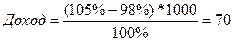 Пример 37. Инвестор приобрел облигацию по цене 98%, а через 1 месяц продал ее по цене 105% от номинала. Номинал облигации составляет 1000 рублей. Чему равен доход инвестора от покупки и последующей продажи облигации (без учета налогообложения)? Решение: