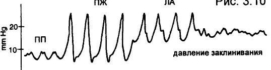 - При введении катетера в положение для измерения давления заклинивания, амплитуда кривой давления значительно уменьшается.