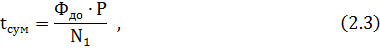 де Фдо - дійсний фонд часу роботи обладнання, в годинах; Ф = 2030 год. Р - кількість технологічних операцій по усуненню всіх дефектів (вибирається за маршрутною технологією без врахування контрольної операції). Із пункту 2.3 Р приймається рівним 12 (Р=13-1=12 операцій). N1 - виробнича програма відновлення деталей.N1 = 2224 шт. Підставивши значення в формулу (2.3) маємо: