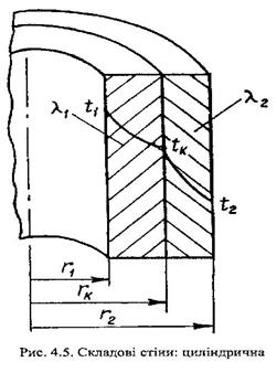 Якщо труба складається з n неоднорідних шарів, що щільно прилягають один до одного (рис) то тепловий потік визначають з рівняння