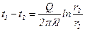 Замінивши відношення радіусів відношенням діаметрів, отримаємо формулу для потужності теплового потоку через циліндричну стінку: