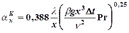 Після підстановки виразів для критеріїв Нуссельта і Грасгофа, можемо визначити локальний коефіцієнт конвективного теплообміну: