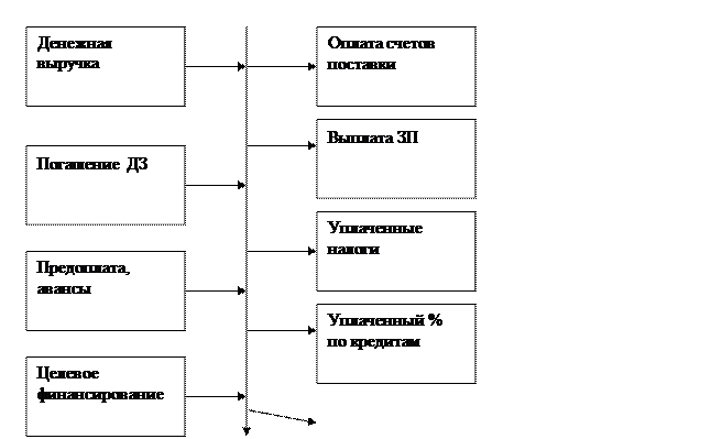В действительности предприятие осуществляет все виды деятельности одновременно и отражается в едином денежном потоке. Этот совокупный денежный поток на каждом шаге расчета – это обеспечение жизнеспособности предприятия или проекта.
