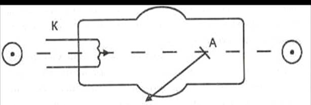 Схема генератора рентгеновских лучей Разогретый катод (К) служит источником электронного потока, который разгоняется в сильном электрическом поле, приложенном между катодом и анодом (А) в вакуумной трубке. Электроны, долетевшие до анода. тормозятся им, в результате чего возникает высокочастотное э/м излучение, называемое тормозным и имеющее непрерывный спектр до некоторой предельной частоты. Для рентгенотехники используются длины воли от 10-5 до 10-1 нм, анодные напряжения порядка 25...150 кВ с энергией γ -квантов от 20 до 150 кэВ. Корпус (баллон) рентгеновской трубки изготовлен из термостойкого стекла. Иногда средняя часть трубки выполняется с применением металлов. что позволяет избежать электролиза стекла и частично снимать проблему теплоотвода. Чтобы улучшить теплоотвод, среднюю часть делают с расширением или используют схемы принудительного охлаждения с масляным теплоносителем. В качестве источников электронов обычно используется вольфрамовый катод с рабочей температурой около 20000С. Для фокусировки электронного пучка катод помещается в никелевую капсулу. Угол скоса анода выбирается около 17 град по отношению к оси трубки. В качестве материала анода обычно используют вольфрам и молибден, иногда с различными добавками. Для увеличения срока службы и улучшения теплоотвода в некоторых конструкциях трубок используют аноды специальной формы, слойные, вращающиеся аноды и т.д. Простейшим приемником в рентгенодиагностике является рентгеновская пленка прямого изображения (взаимодействие квантов рентгеновских лучей с зернами бренного серебра). Для устранения недостатка сниженной контрастной чувствительности и пространственной разрешающей способности (в связи с вредным влиянием ренгеновских лучей яркость не превышает 10-2 кд/м2 - канделы) используют электронно-оптические усилители рентгеновского изображения (УРИ), способные усиливать яркость изображения за счет ускорения электронов с помощью внешнего электрического поля.