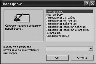 Форма строится на основе Access таблицы или запроса. При каждом открытии сохраненной формы обновляются данные запроса, на основе которого создается форма. Благодаря этому содержимое формы всегда соответствует информации в таблицах и запросах.