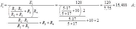 Токи I2 и I5 обратно пропорциональны сопротивлениям этих ветвей и определяются так: I ′ 2 =I′ 3 ∙ I′ 5 = I′ 3 ∙ Для схемы рис. 2.4, в