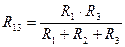 где R1, R2, R3 - сопротивления " треугольника"; R12, R23, R13 - эквивалентные значения " звезды" сопротивлений.