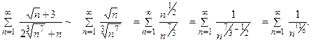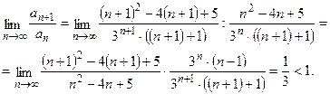е) Составим ряд, эквивалентный исходному, оставив в числителе и знаменателе лишь старшие степени n: