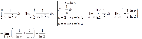 д) Исследуем данный ряд с помощью интегрального признака Коши. Составим соответствующий интеграл и вычислим его