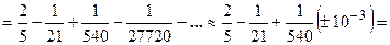 Заметим, что при вычислении интеграла получаем знакочередующийся ряд. Мы отбрасываем при вычислении все слагаемые, начиная со слагаемого, меньшего по абсолютной величине заданной точности