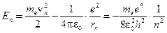 В этих уравнениях me – масса электрона, e – элементарный заряд, ε 0 – электрическая постоянная. Энергия электрона на n -й орбите: