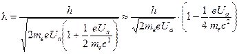 Учитывая (6), и подставляя в формулу де Бройля, получим релятивистское выражение для длины волны электрона, ускоренного разностью потенциалов Ua: