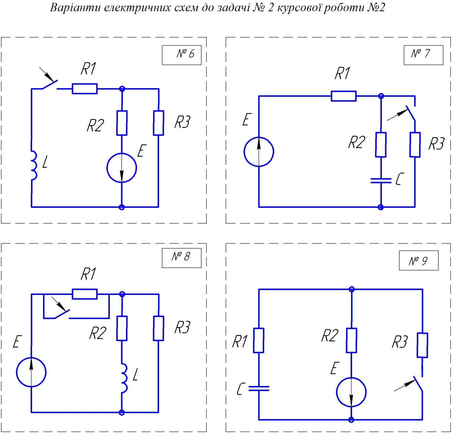 Задача № 2. Розрахунок перехідних процесів в лінійних електричних колах постійного струму Розрахунок перехідних процесів в розгалуженому електричному колі постійного струму з одним реактивним елементом. Згідно номеру свого варіанту і номеру схеми виконати наступне завдання: 1. Визначити класичним методом закони змін у часі струмів у всіх гілках схеми і напругу на реактивному елементі після комутації. 2. Визначити тривалість перехідного процесу та построїти часові графіки миттєвих значень всіх струмів і напруг на реактивному елементі. 3. Перевірити правильність розрахунків та побудов, упевнившись у виконанні 1 закону Кірхгофа в любий момент часу. Дані до задачі № 2: