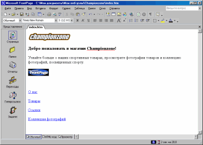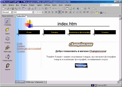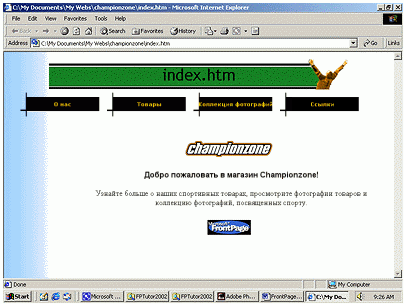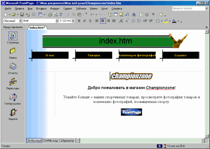 | Создание веб-узла вымышленного магазина спорттоваров Championzone. Изучение программного продукта MS FrontPage 2002.