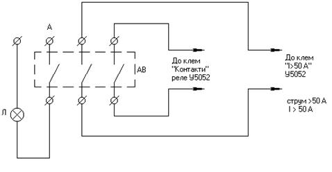На рис. 3 показана схема підключення випробуваного автомату до пристрою У5052 Рис. 3. Схема лабораторної установки Складати і розбирати схеми для дослідження слід за відсутності напруги на стенді. Перед початком роботи викладач перевіряє правильність складання схем, після чого дозволяє включення напруги на стенд. Якщо при виконанні роботи виникли неполадки, необхідно зняти напругу зі стенда і звернутися до викладача. Порядок виконання роботи 1. Скласти схему дослідження автоматичного вимикача. 2. Зняти залежність часу спрацьовування захисту автомату від сили струму tcпp = f (I). Кожен дослід проводиться в такій послідовності: 1) увімкнути установку У5052. Перед увімкненням вихідний стан ручок керування У5052: S 2 = Ä; S 3 = откл; S 4 = 5 A; S 5 = 450 B; S 6, S 7 = ~IТ; S 8 = возврат; S 9 = 115 B; Т 1 = мінімум; S 10 – откл; S 11 – откл; S 12 = 100; S 13 = откл; S 15 = 50 A; S 16, S 17 = 100 A; S 18 = AB; S 19 = 5 A; S 20 = прямо; S 21 = “0”. Установка вмикається S 10 = “ВКЛ” 2) подати струм у ланцюг досліджуваного автомата: S 8 = " срабат"; регулюючи ручкою Т 1 струм, домогтися необхідного значення струму, вимкнути S 8 = " Возврат"; 3) виміряти час спрацьовування автомата при виставленому струмі. Для цього перемкнути S 2 у положення “Ср”, увімкнути S 8 = “срабат”, після зупинки електросекундоміра відключити S 8 = “Возврат”.