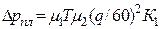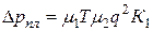 μ 1 – коэффициент динамической вязкости воздуха, Па× с; его значение для воздуха находят по формуле Милликена, Н× с/м2 m 1 = 17, 11845 × 10-6 + 49, 3443 × 10-9t, при t = 20 °С m 1 = 17, 11845 × 10-6 + 49, 3443 × 10-9 × 20 = 18, 1× 10-6 Н× с/м2. q – удельная газовая нагрузка, равная скорости фильтрования, м/мин. Потери напора в осевшей на ткань пыли Δ рпл рассчитывается по уравнению, Па: