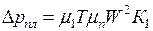 где Кп – коэффициент сопротивления экспериментальный, м-1, зависимый от размеров частиц и проницаемости ткани; для лавсановой ткани и твердых частиц с медианным диаметром d 50=10…20 мкм μ 1 – коэффициент динамической вязкости, определяемый по формуле Милликена; при t = 20 °С m 1 = 18, 1× 10-6 Па× с; W – скорость фильтрования, W =0, 042…0, 1 м/с; п - показатель степени, для ламинарного режима n = 1.