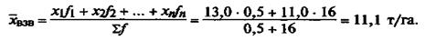 Однако могут возникать ситуации, в которых нельзя использовать среднюю арифметическую. Например, урожай собирают с разных площадей. Так, на участке площадью 0, 5 га урожайность картофеля составила 13, 0 т/га, а на участке площадью 16 га - 11, 0 т/га. Средняя арифметическая, рассчитанная по простой формуле,